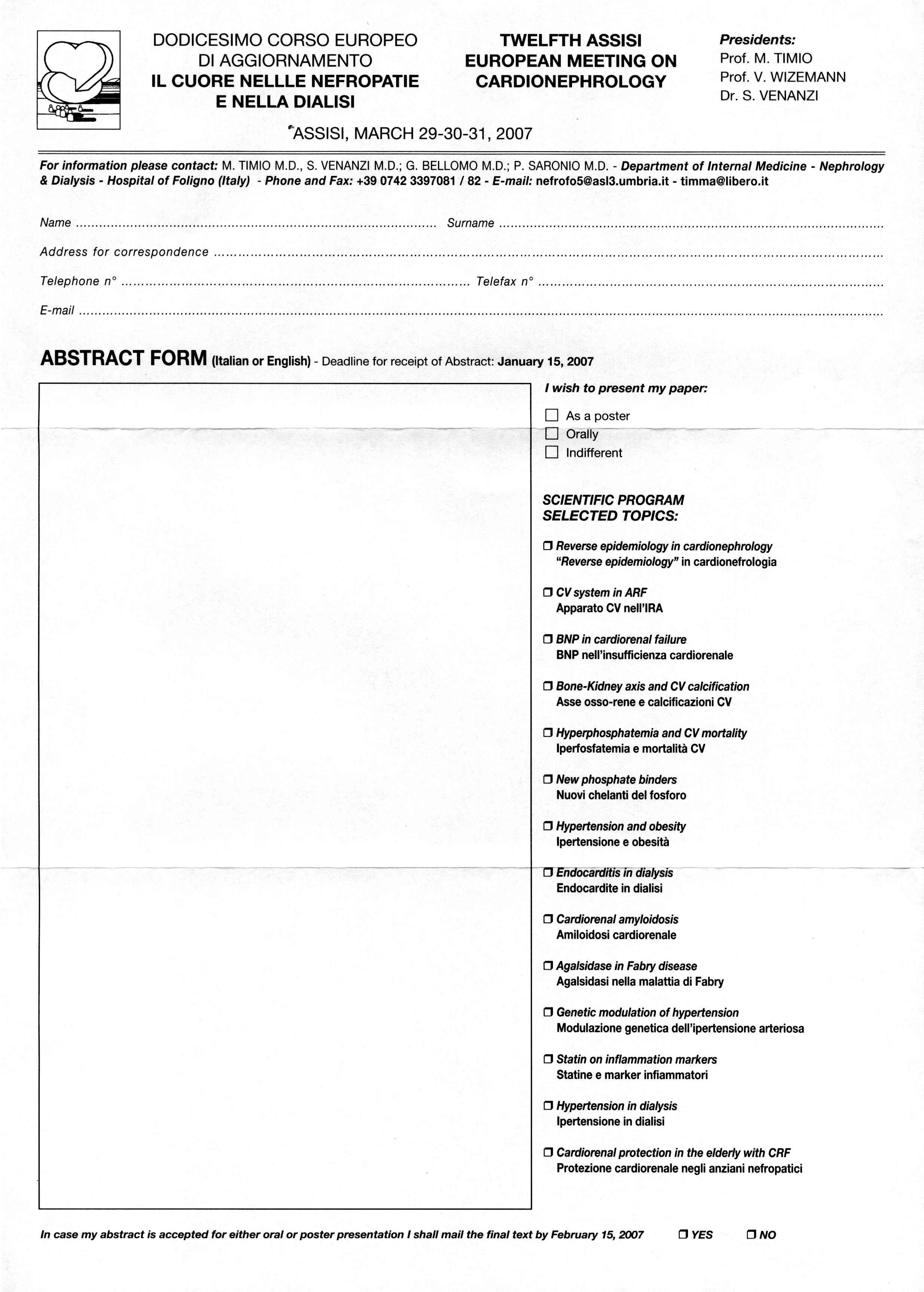 Program 12. Assisi European Meeting on Cardionephrology 2007 - Abstraktový formulár - Abstract form